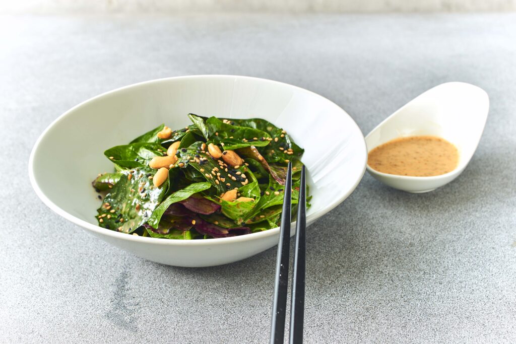 - Blattsalate vom Wochenmarkt, dazu Kräuter- oder Sesam-Dressing.