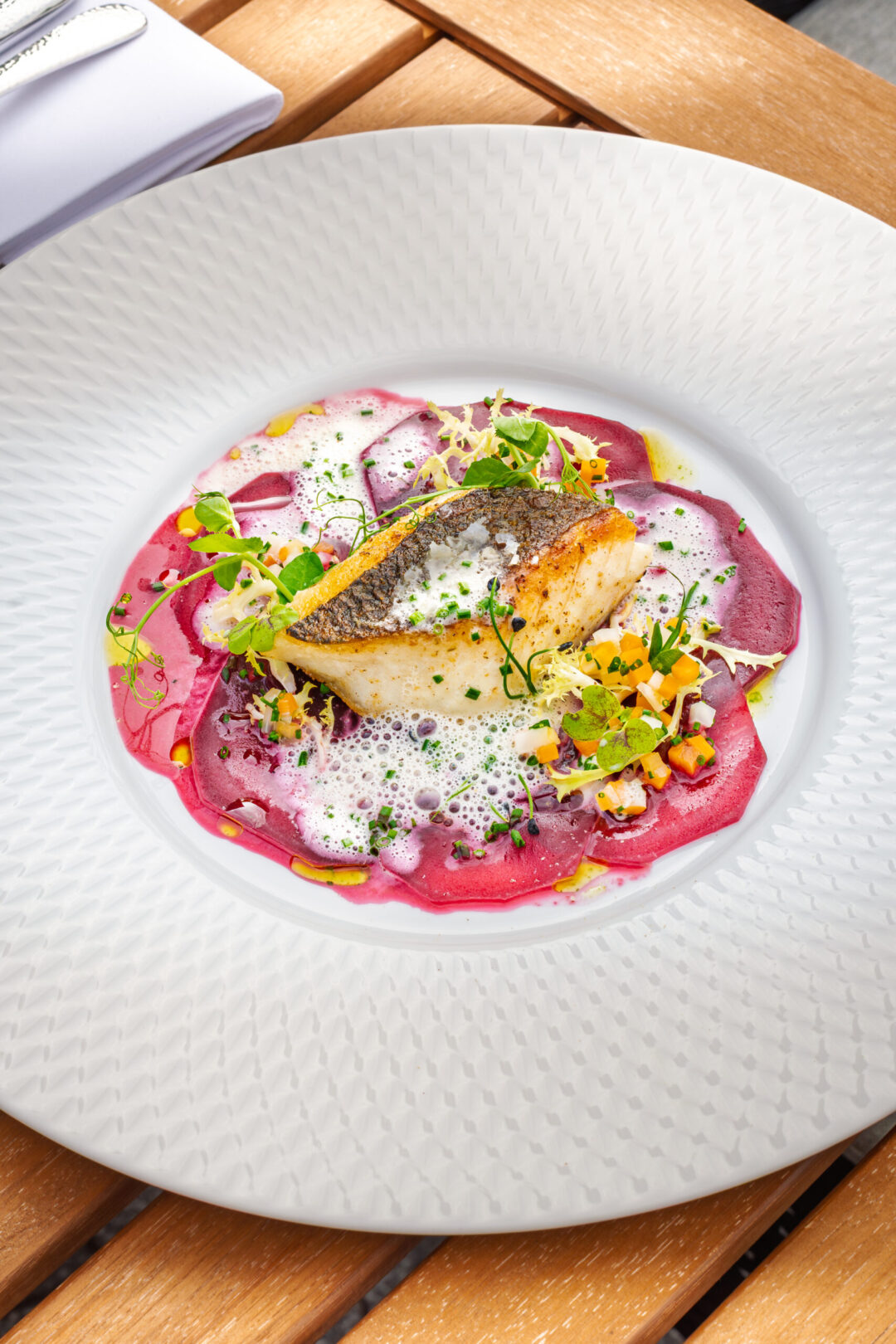 - Hummer-Lachs-Carpaccio – delikat, serviert mit Basilikumdressing und Hummercreme.